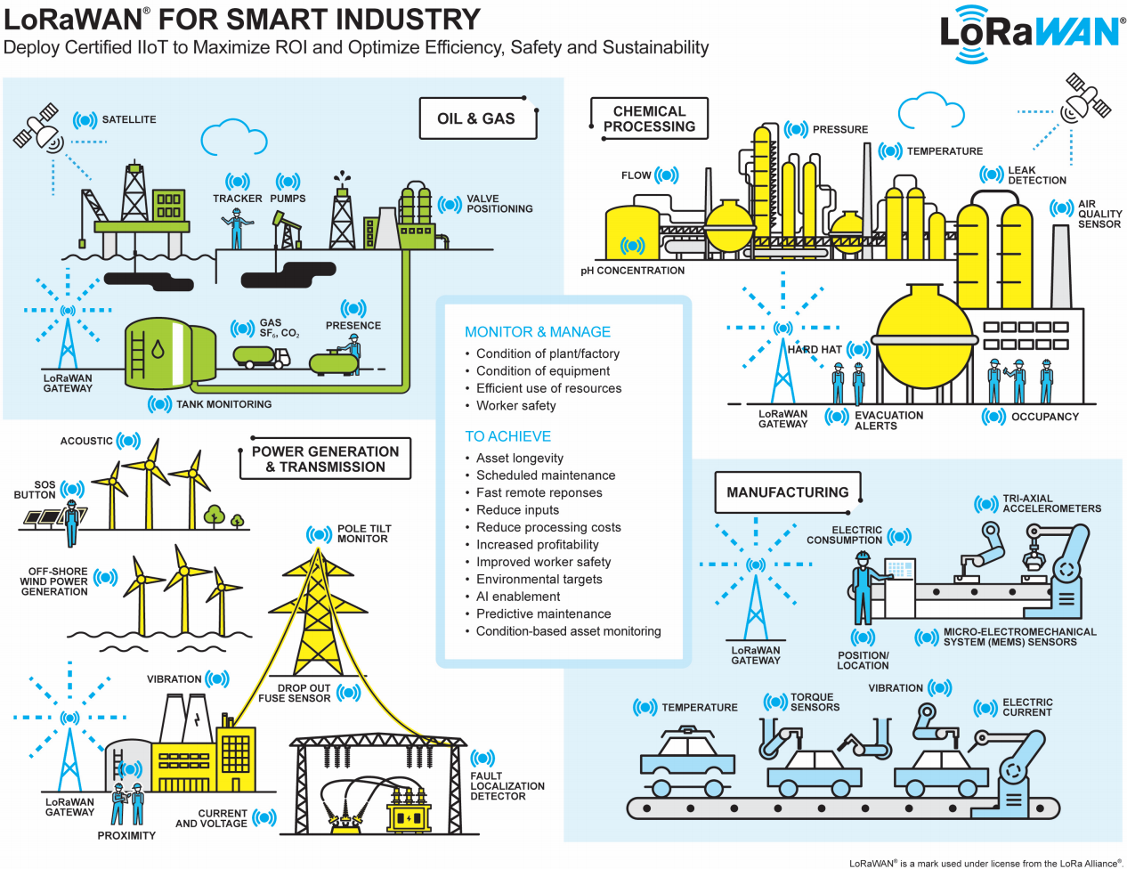 LoRaWAN®在智能工业中的应用示意图 图源:LoRa联盟官网